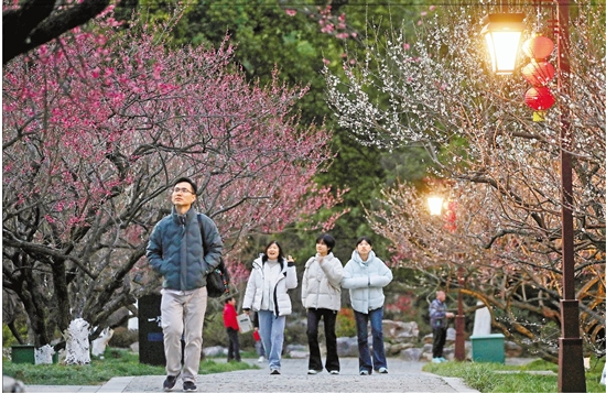 | 2月23日晚,杭州市临平区超山风景名胜区首次开放夜游专场,以光影技术点亮“十里梅花香雪海”,主题灯会散落梅林之间,同时还有沉浸式剧本游、春日消费市集等,以多元业态解锁夜间文旅新场景。 本报记者 林云龙 通讯员 冯丽娴 摄 |