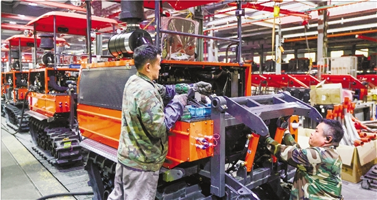 当前,各地春耕备耕正有序开展。3月1日,在临海市的中联重机浙江有限公司生产车间,工人在生产线上装配旋耕机,以满足市场需求。 通讯员 孙金标 摄