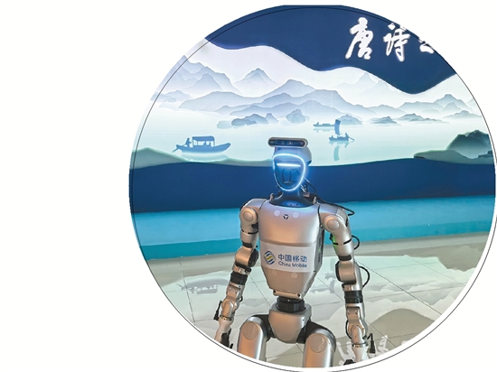 由中国移动(浙江)创新研究院打造的小天智能机器人依托5G-A通算智一体化能力,通过视觉大模型先进算法,在绍兴博物馆担任讲解员。