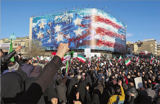 3月1日,民众在伊朗首都德黑兰集会,哀悼伊朗最高领袖哈梅内伊。 新华社/迈赫尔通讯社