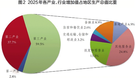 图2 2025年各产业、行业增加值占地区生产总值比重