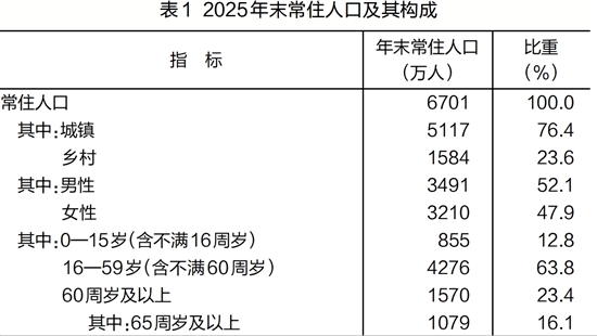 表1 2025年末常住人口及其构成
