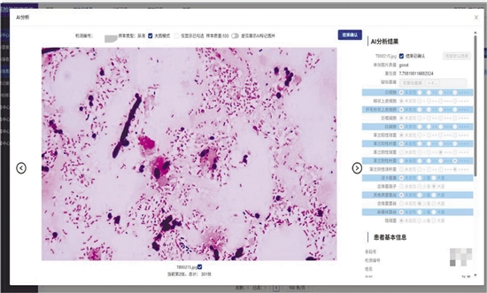 迪安诊断基于医学生物语料库研发的革兰氏染色涂片智能识别系统,可将一张涂片镜检的平均时间从15分钟缩短至约1分钟。 受访者供图