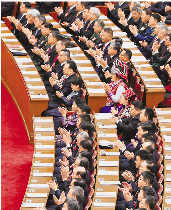 3月4日下午,中国人民政治协商会议第十四届全国委员会第四次会议在北京人民大会堂开幕。 新华社记者 李贺 摄