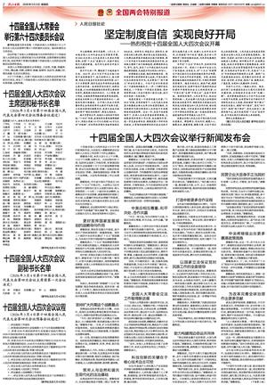 十四届全国人大四次会议议程