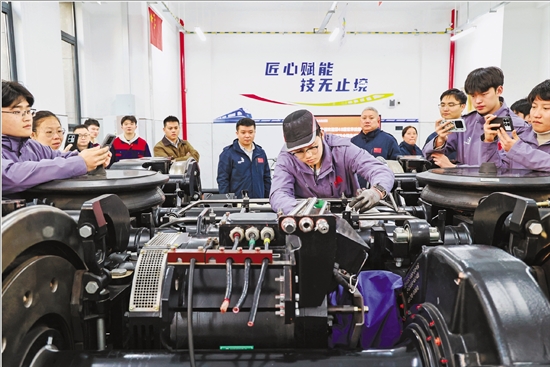 | 3月6日,第48届世界技能大赛轨道车辆技术项目中国集训队在浙江交通技师学院开展为期两天的技术交流活动。来自全国各集训基地的代表、项目中国技术指导专家组、教练团队及集训队选手齐聚金华,交流研讨技能提升、技术攻关等,全力备战世界技能大赛。 本报记者 潘秋亚 摄 |