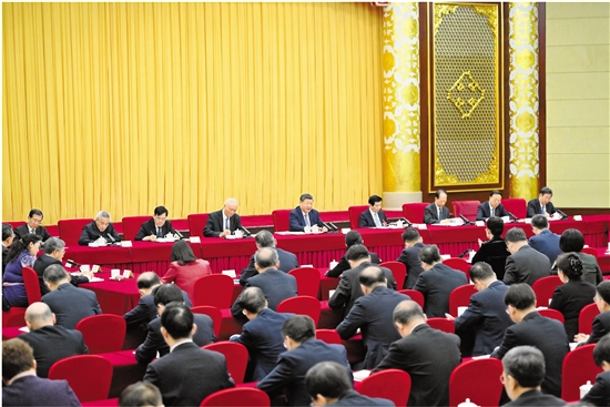 | 3月6日下午,中共中央总书记、国家主席、中央军委主席习近平看望参加全国政协十四届四次会议的农工党、九三学社、医药卫生界、社会福利和社会保障界委员,并参加联组会,听取意见和建议。中共中央政治局常委、全国政协主席王沪宁,中共中央政治局常委、中央办公厅主任蔡奇参加看望和讨论。 新华社记者 谢环驰 摄 |