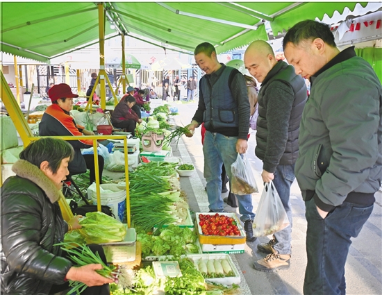 3月9日下午4时多,一些下班的工人在“7080”共富市集买菜。 通讯员 张宇立 摄