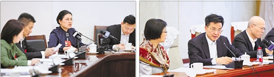 3月9日下午,出席十四届全国人大四次会议的浙江代表团在驻地举行小组会议,认真审议全国人大常委会工作报告。代表们踊跃发言、积极建言,依法履行职责,共商发展大计。 本报记者 李震宇 摄