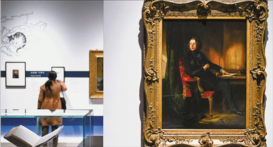 3月17日,“从莎士比亚到J.K.罗琳:英国文学家肖像与名迹展”在上海博物馆东馆启幕。展览汇集135件珍贵藏品,涵盖82位英国文学大师的肖像、手稿、初版书籍与信件。本次展览由上海博物馆与英国国家肖像馆联合主办,大英图书馆参与策划,将于3月18日起向公众免费开放。图为在展览现场拍摄的“查尔斯·狄更斯”肖像。 新华社记者 陈浩明 摄 |