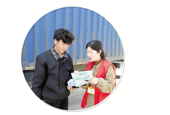 平安人寿金华中心支公司工作人员向货运司机讲解“金融消费者八大权益”知识。