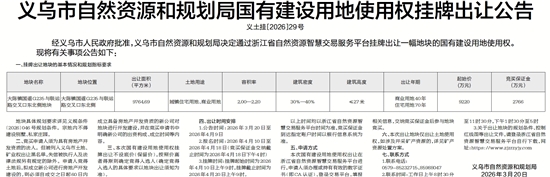 义乌市自然资源和规划局国有建设用地使用权挂牌出让公告