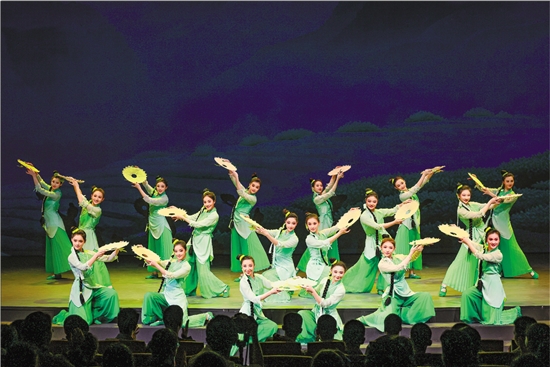 3月28日,“致越剧·正青春”浙江小百花越剧院致敬越剧诞生120周年主题晚会在杭州蝴蝶剧场精彩上演。图为《雨前曲·采茶舞曲》选段。 本报记者 徐文迪 通讯员 韩斌 摄