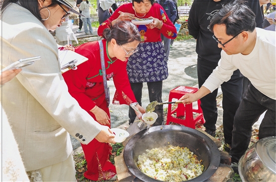 桐乡八泉村,游客在桑野岛上烧野火饭。 通讯员 朱文奇 摄