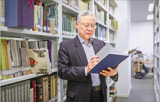 汪维辉在图书馆。 受访者供图