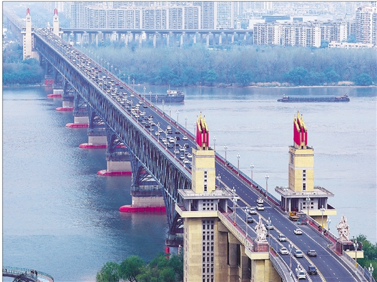 4月6日,车辆在南京长江大桥上行驶。 新华社发(杨素平 摄)