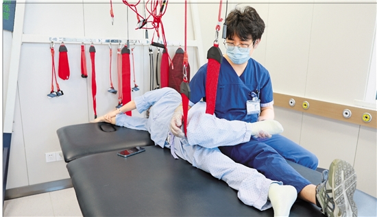 在浙大二院脊髓损伤临床研究病区,治疗师给患者进行康复训练。 受访者供图