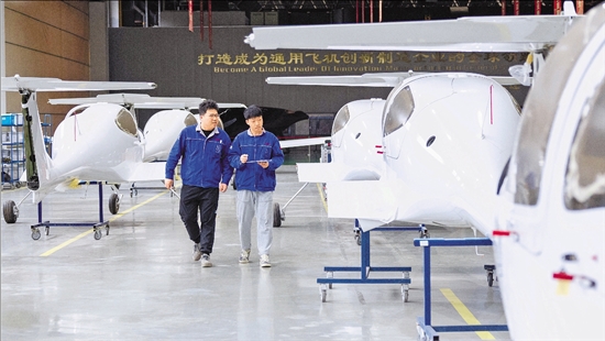 4月8日,绍兴新昌万丰航空小镇的浙江万丰飞机制造有限公司生产车间内,员工正在赶制钻石DA40NG飞机。钻石DA40飞机是万丰集团的明星机型,用于航校培训、长途飞行、观光旅行等,其核心部件已实现自主研发生产,远销欧美、亚太等30多个国家和地区,海外市场份额持续扩大。今年年底,钻石DA62飞机也将在绍兴新昌实现量产。 本报记者 朱海伟 摄 |