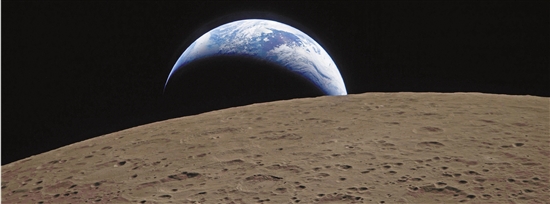 这是4月6日从执行“阿耳忒弥斯2号”载人绕月飞行任务的“猎户座”飞船上拍摄的月球(前)和地球。
