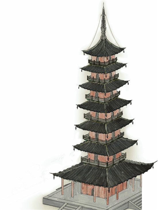 郭俊成绘制的嘉兴东塔寺宋代景观复原图(局部)。