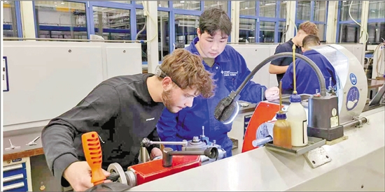 德西福格汽车配件(平湖)有限公司“产才班”毕业学员赴德资企业总部精研数控加工技术。 图片由平湖市人力社保局提供