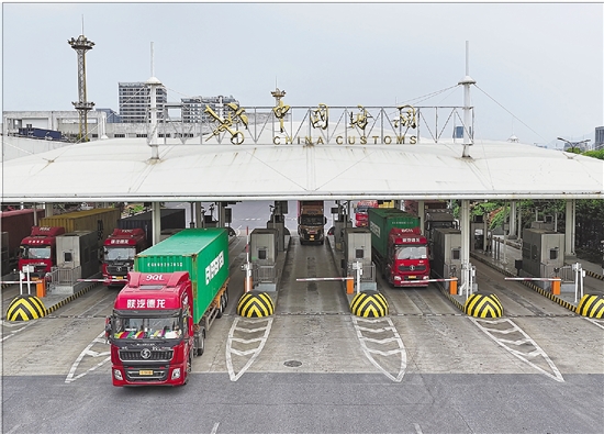 4月9日,集卡车在义乌港海关监管场所完成施封出场。 共享联盟·义乌 吴峰宇 摄