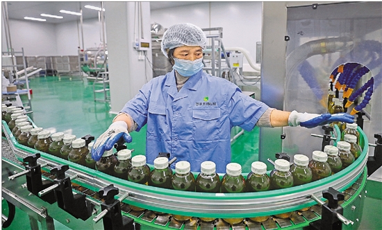 龙顶石斛茶饮正沿着自动化生产线有序流转。 本报记者 林云龙 摄