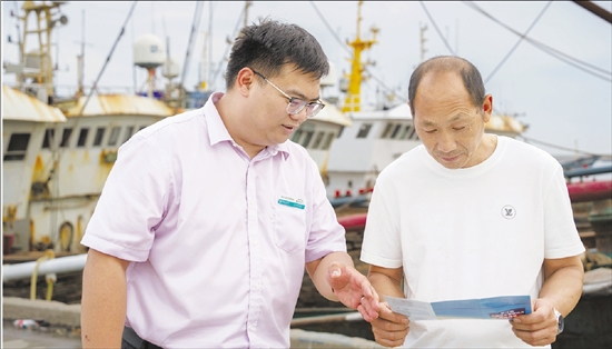 农行岱山县支行向渔民介绍“马力贷”产品和政策 图片由农行舟山分行提供