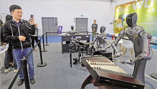 | 4月22日至24日,万物生长·全球独角兽创新展在杭州国际博览中心举办。本届展会聚焦人工智能与具身智能全产业链成果,以宇树科技、云深处等企业为核心,汇聚全球AI头部企业,集中呈现前沿科创成果与产业落地应用。图为和璇机器人乐队演奏《青花瓷》《孤勇者》《梁祝》等曲目。 本报记者 林云龙 摄 |