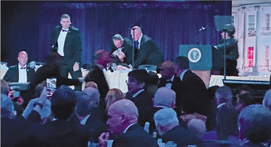 4月25日,安保人员在白宫记者协会晚宴现场工作。 新华社/美联